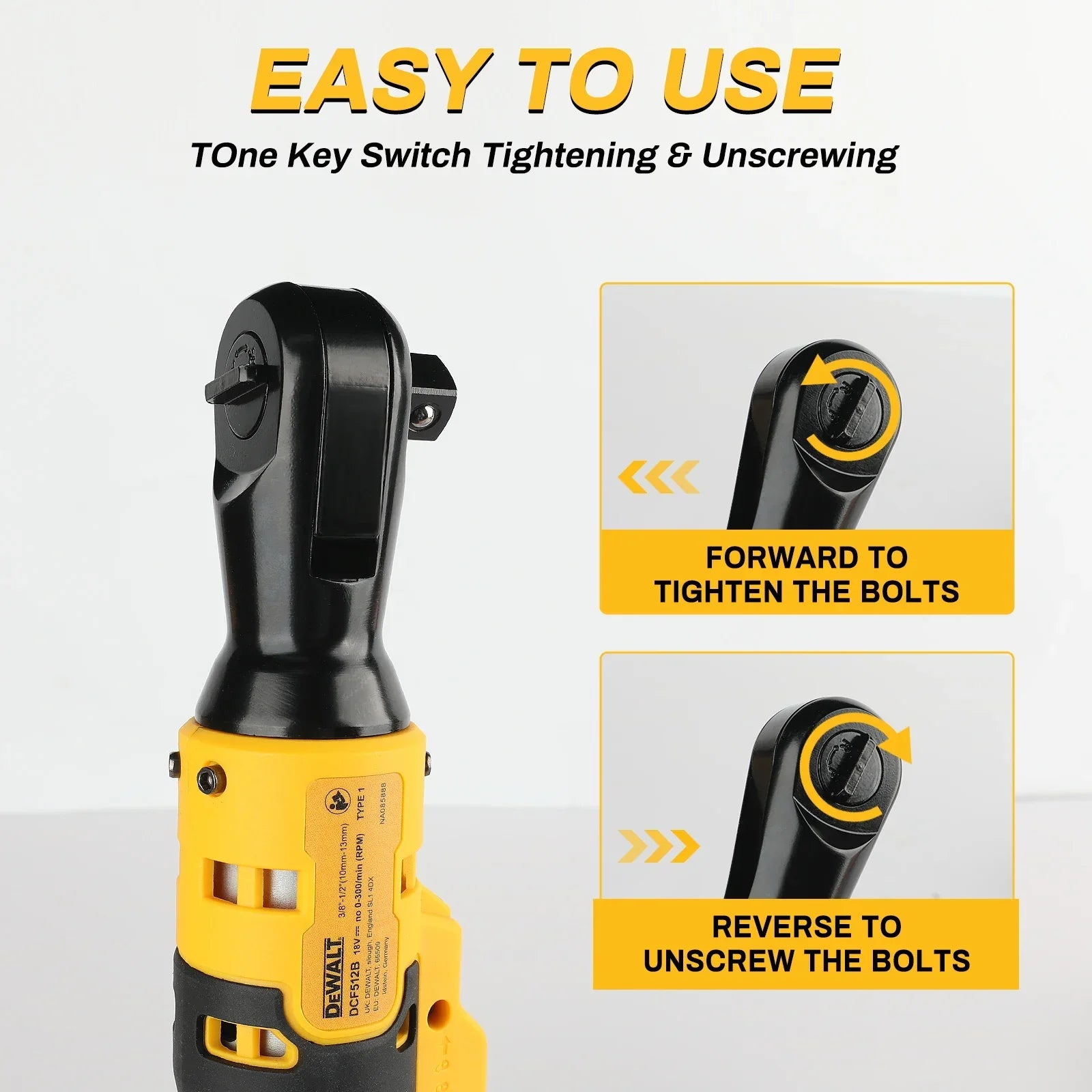 Dewalt 512 — Chiave ad angolo retto brushless da 20 V, coppia elevata da 95 N·m, 2500 RPM, design compatto per la manutenzione automobilistica.